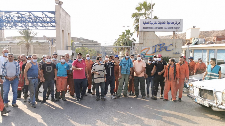اعتصام لعمال معمل النفايات في سينيق احتجاجاً على عدم تأمين سيولة لدفع أجورهم
