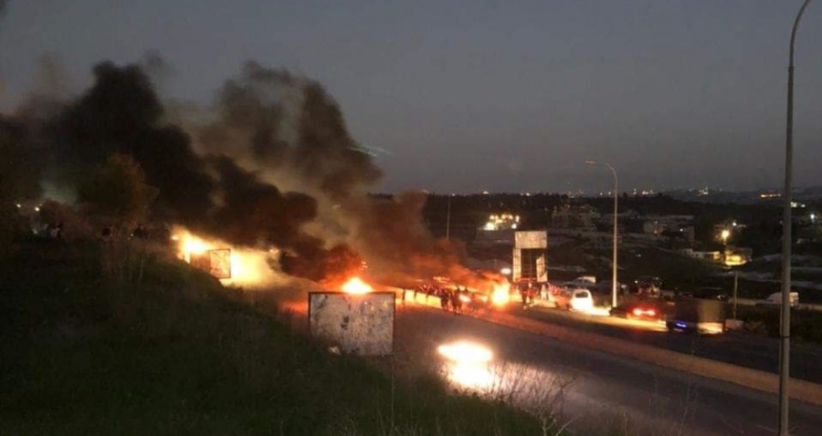 قطع محتجون ليلاً الطريق الرئيسي في الشوف مفرق سرجبال- كفرحيم- دير القمر- بعقلين. وأشعلوا الاطارات المطاطية واضعين الحجارة وسط الطريق.