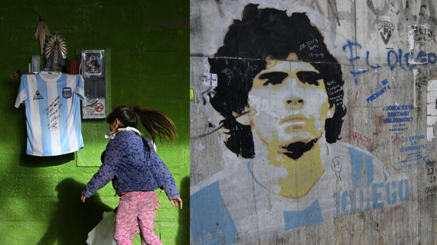 وكتب مارادونا على القميص وهو نسخة عن ذلك الذي ارتداه في كأس العالم لكرة القدم العام 1986 التي فازت بها الأرجنتين "سنخرج من ذلك".