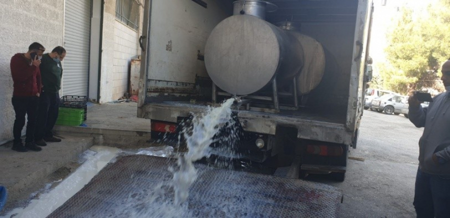 ونقلت وسائل إعلام محلية فلسطينية صورًا لمنتجي حليب من مدينة نابلس يتلفون مئات الأطنان من الحليب التي تكدس في مخازنهم، وقال أحد منتجي الحليب في مدينة جنين بشمال الضفة الغربية لوكالة محليّة: "إننا أتلفنا أطنانا من الحليب، وقمنا بسكب الحليب في الشوارع لعدم قدرة المصنع على استيعاب كل الكميات التي نقوم بإنتاجها بسبب الأوضاع الحالية".