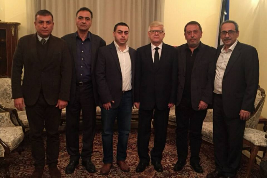 ضم الوفد اعضاء المكتب السياسي عمر الديب وسلام ابو مجاهد وربيع رمضان وعضوي اللجنة المركزية احمد داغر وايهم الاحمر، وكان في استقبالهم طاقم السفارة.