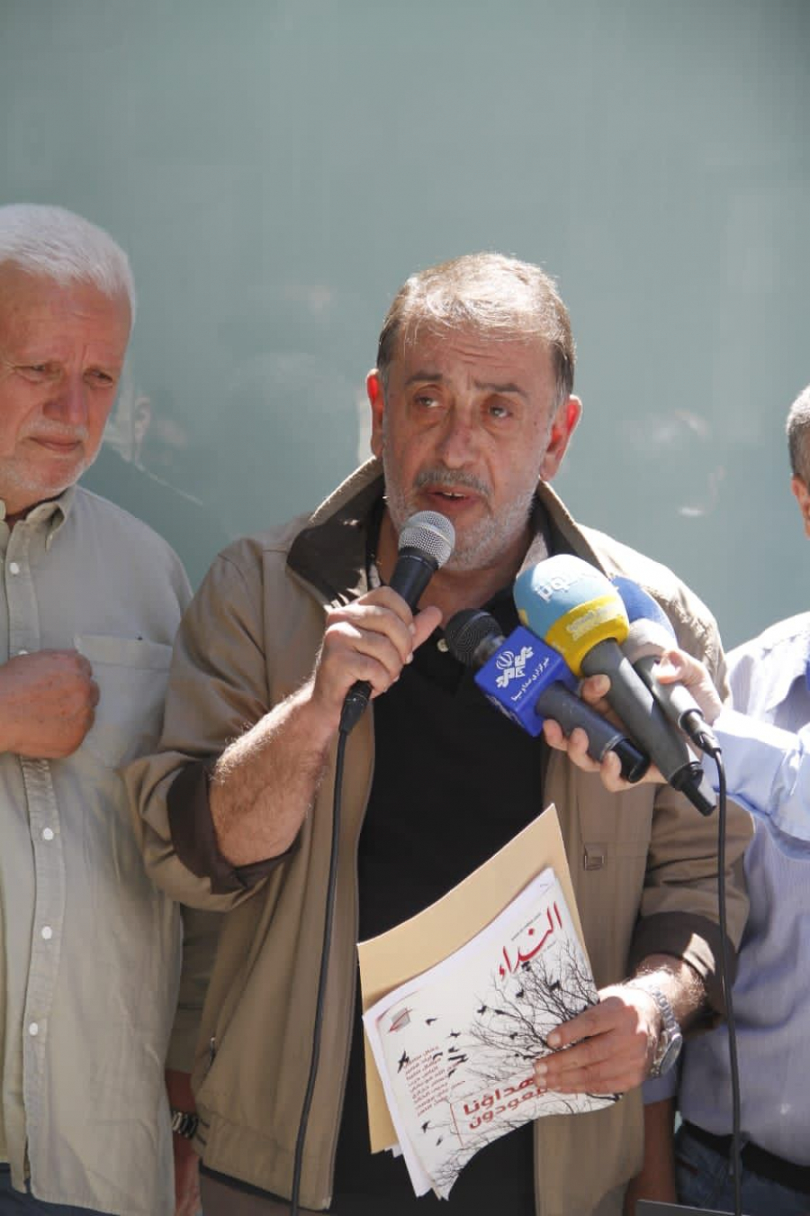 أخيراً، اسمحوا لي وباسم الحزب الشيوعي اللبناني أن نحيي نضال شعبنا الفلسطيني في الأراضي المحتلة في الضفة وغزة وفي أراضي 48، ونخص الحركة الأسيرة الفلسطينية المناضلة، موجهين التحية لأبطال فلسطين لأحمد السعدات ومروان البرغوتي وبسام السعدي وخليل العووادة ومن خلالهم لجميع الأخوة والرفاق في الأسر والاعتقال، وختاماً باسمكم نوجه التحية لأسير فلسطين ولأسير لبنان في السجون الفرنسية لجورج ابراهيم عبدالله.