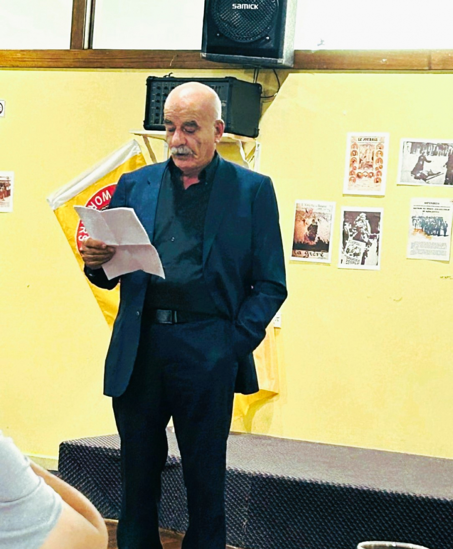 وأعطيت الكلمة بعده للرفيق احمد ممثلاً الحزب الشيوعي الايراني والذي تلا بيان الحزب الصادر بمناسبة الاول من ايار مؤكداً وقوف الحزب إلى جانب نضال الشعب الفلسطيني