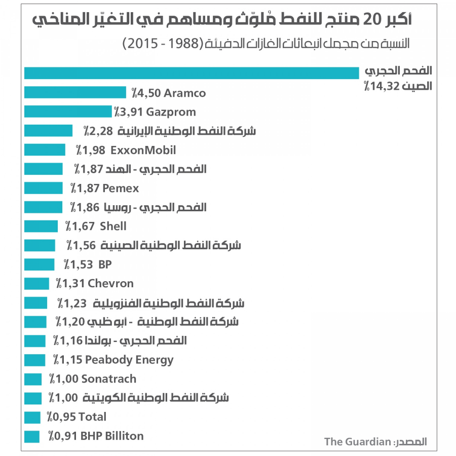 ووسط هذا التناقض بين رأس المال والبيئة، تأتي السياسات المُروّجة للحلول الفردية لمصلحة الأوّل، إذ تعفيه من مسؤوليته الأساسية والتاريخية عن هذا المسار الانحداري للبيئة. وإذا نظرنا إلى حقيقة أن 100 شركة في العالم فقط مسؤولة عن 71% من الانبعاثات الدفيئة، وعلى رأسها شركات النفط العملاقة، كما أشارت دراسة نشرتها صحيفة The Guardian، تصبح الحلول الفردية المطروحة أقرب إلى الهرطقة منها إلى الحلول.