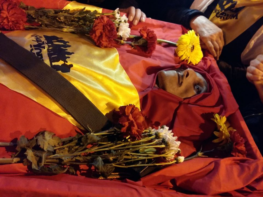 وقالت فرقة جروب يوروم، عبر حسابها بموقع فيس بوك: "قف إسطنبول .. سقط ابن شجاع آخر في الأرض، كما نشرت الفرقة أيضاً فيديوهات خلال إلقاء النظرة الأخيرة وتوديعه قبل أن يتم دفنه غداً في مقابر مدينة قصرى التركية.