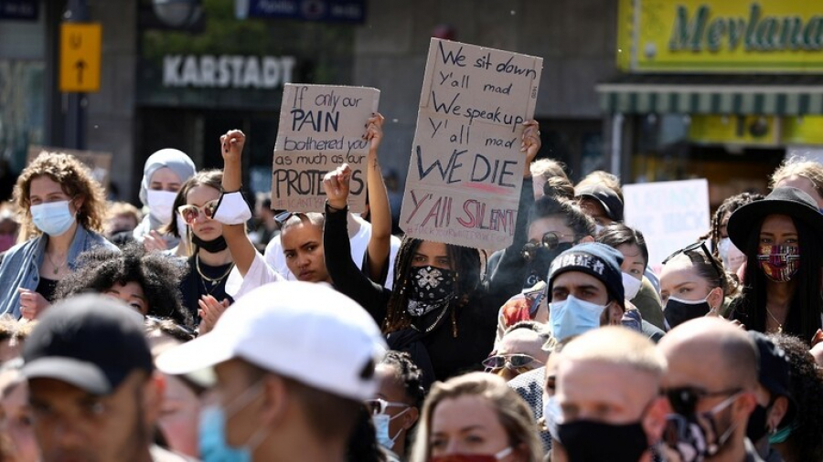 كما شارك عدة مئات من المحتجين في مسيرة خارج السفارة الأمريكية في برلين رافعين لافتات "القصاص لجورج فلويد" و"أوقفوا قتلنا" و"من التالي الذي سيحطم عنقه".