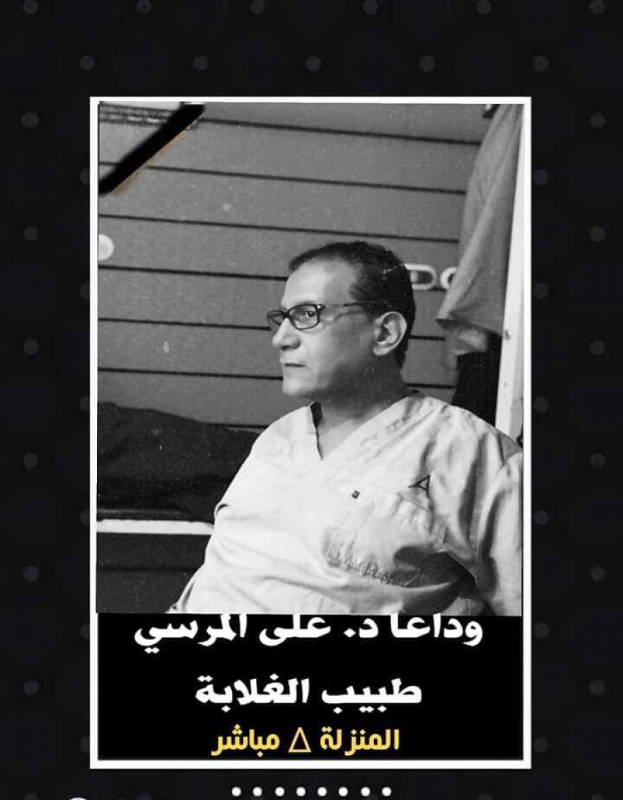 وتوفي طبيب الغلابة الجديد بعد وفاة الدكتور محمد مشالي الملقب أيضا بنفس اللقب، حيث أصيب الدكتور المرسي بفيروس كورونا منذ أسبوعين نتيجة مخالطته حالة بمستشفى "المنزلة".