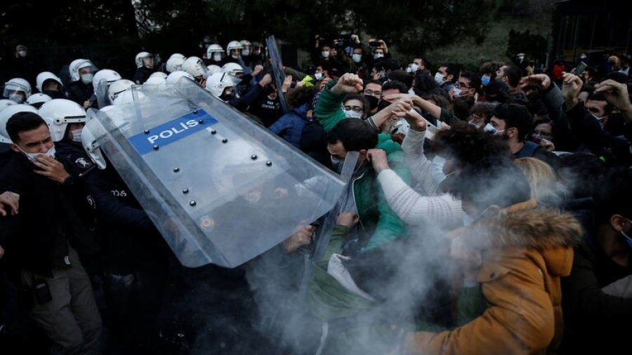 اشتبكت الشرطة التركية يوم أمس الاثنين مع طلاب نظموا احتجاجاً على قرار الرئيس رجب طيب أردوغان تعيين رئيس جديد لإحدى أكبر الجامعات في البلاد، قائلين إن "العملية تمت بطريقة غير ديمقراطية".